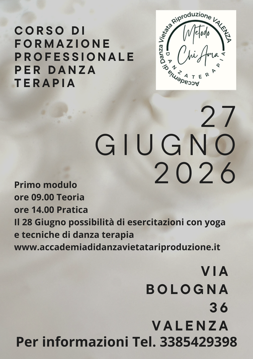 Inoltre, l'Accademia di danza Vietata Riproduzione è un centro specializzato anche nella danza terapia. Qui vengono svolti corsi di formazione per operatori di danza terapia e corsi di danza terapeutica, un approccio innovativo che utilizza la danza come strumento di supporto e miglioramento del benessere psicofisico delle persone.